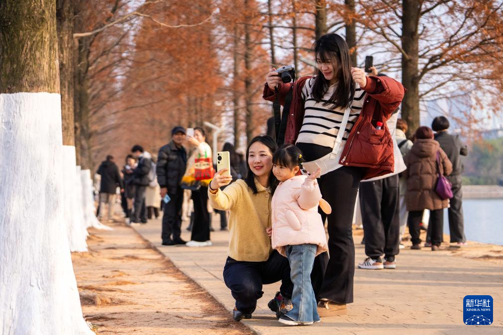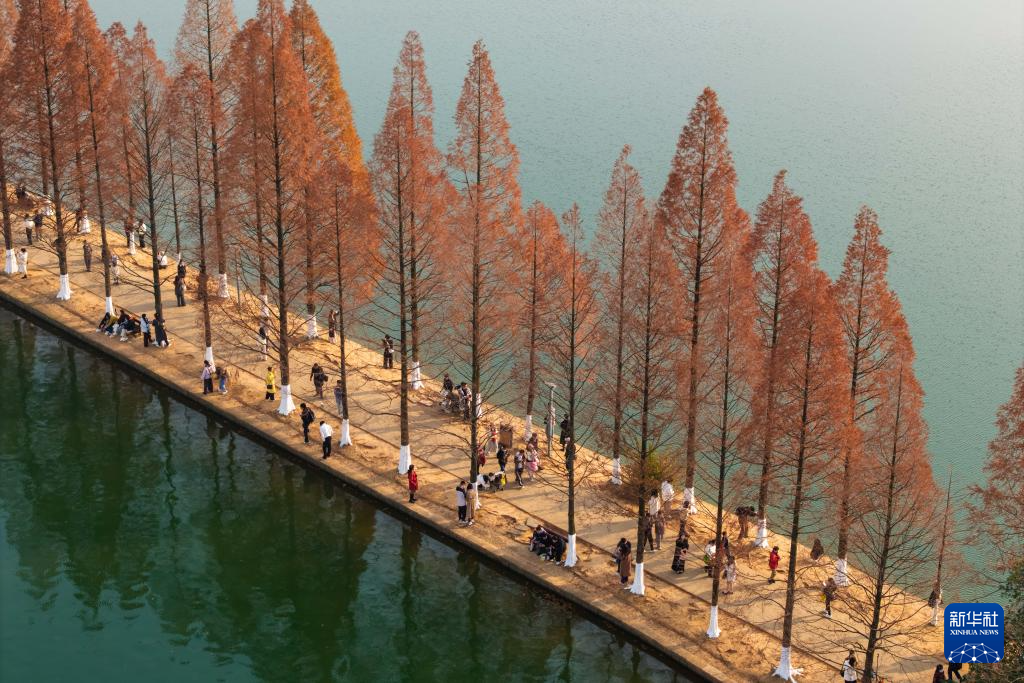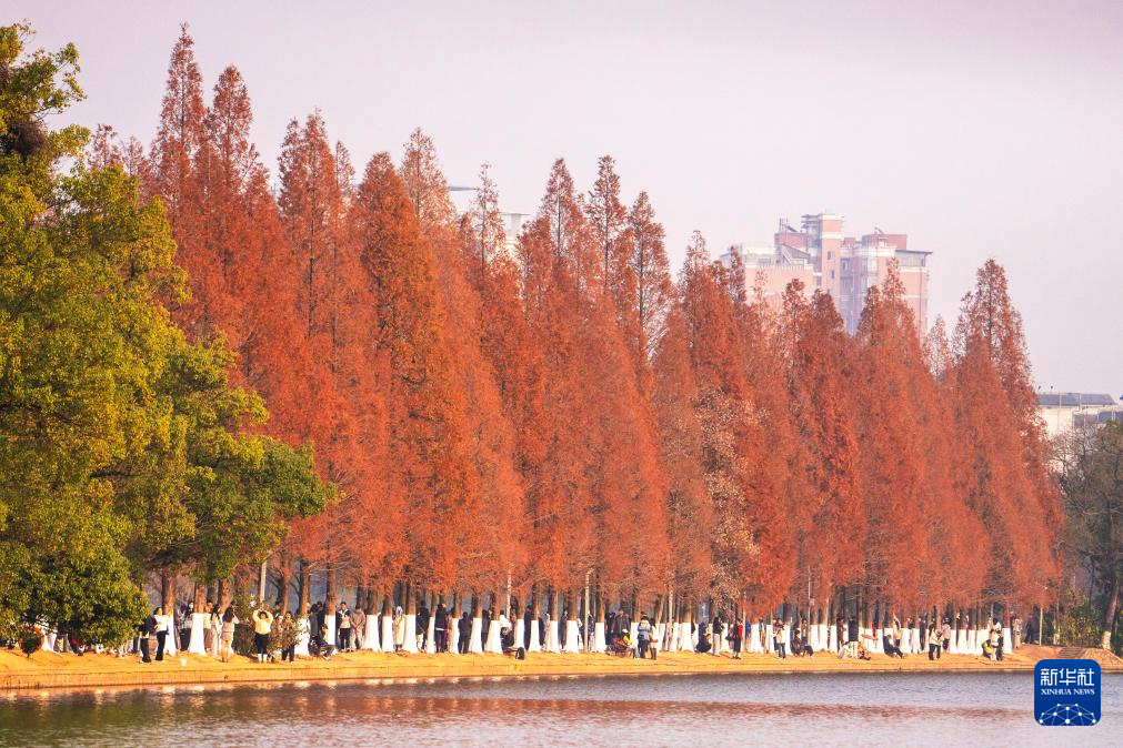 连日来,湖南省长沙市烈士公园的水杉树叶转红,在冬日暖阳的映照下,园内景色如画,吸引不少市民前来游玩打卡。